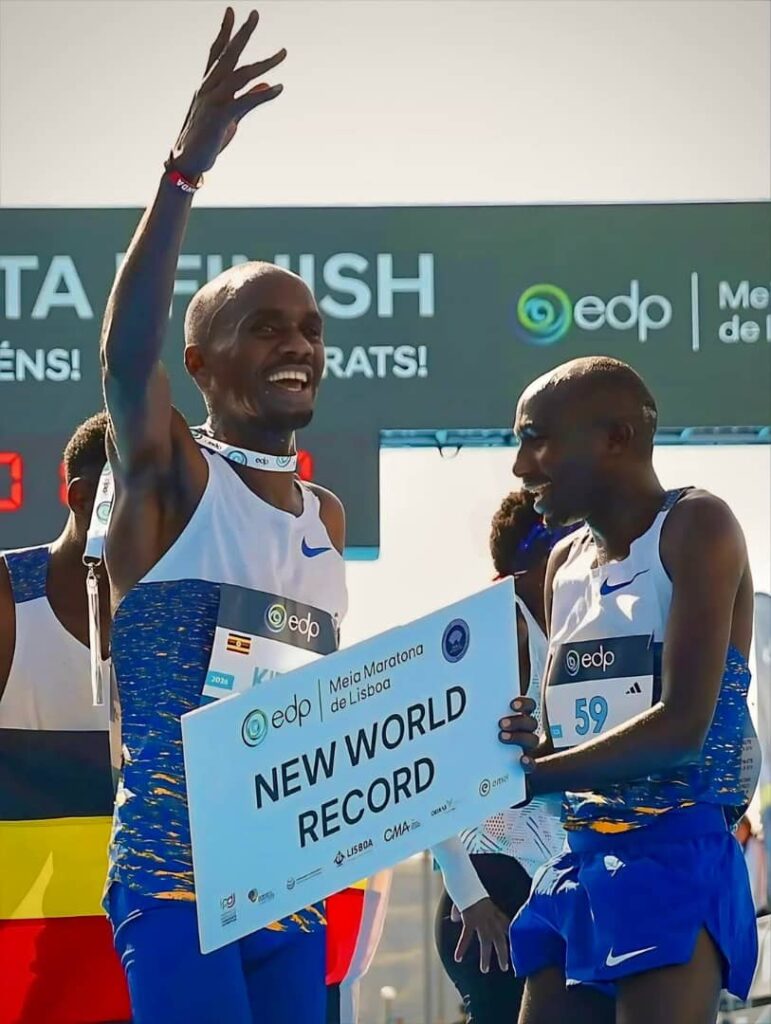 Uganda’s long-distance star Jacob Kiplimo delivered a historic performance after breaking the men’s half marathon world record at the EDP Lisbon Half Marathon in Lisbon on Sunday, March 8, 2026.
